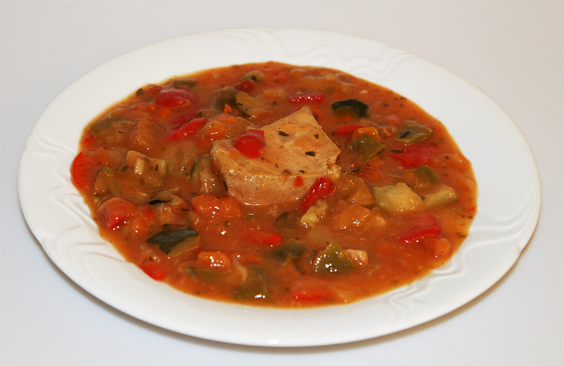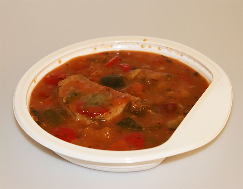 Složení: tuňák 23%, rajčata 23%, cuketa 13%, směs zelené a červené papriky13%, cibule 8%, voda, předsmažený lilek 5% (lilek, slunečnicový olej), rajčata (rajčata bez slupky), rajčatová šťáva, kyselina citrónová, rajský protlak, sůl, modifikovaný škrob, citrónová šťáva, olivový olej, cukr, škrob, česnek, bazalka, petržel, sušený česnek, oregano, pepř, tymián, zahušťovadla: dietní rozpustné vlákniny (guma guar a xanthanová guma).