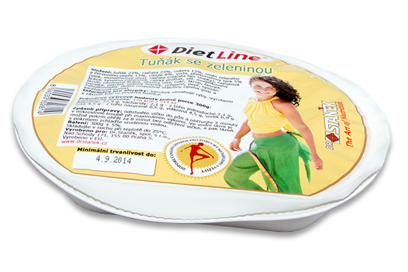 Maso tuňáka obsahuje hodně bílkovin a přiměřené množstvím tuku. V pokrmu každý ocení malý steak s křehkou zeleninou, která je aromatická a má výtečnou chuť. Dietline® Tuňák se zeleninou je určen jak do nízkoenergetického, tak běžného jídelníčku, který obohacuje hlavně o bílkoviny a také o balastní a ochranné látky. Jako hlavní jídlo se sníženým obsahem energie nám pomáhá udržovat váhu.